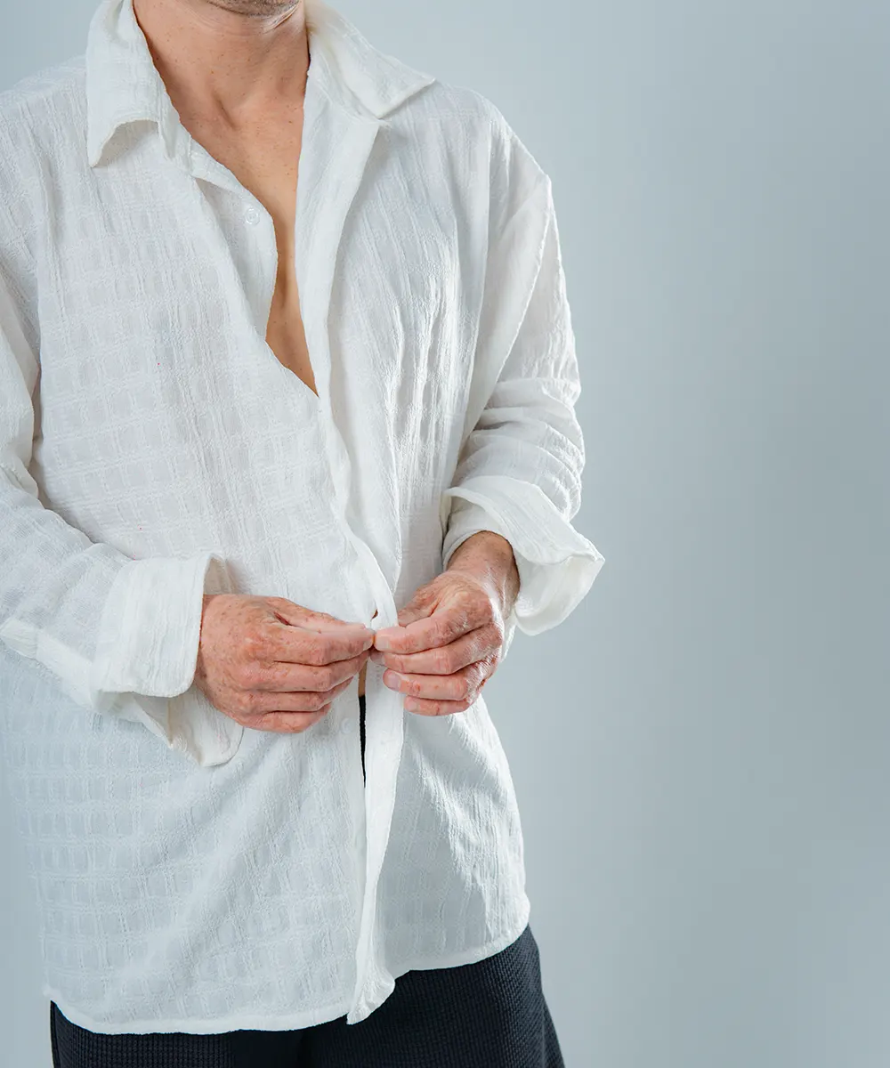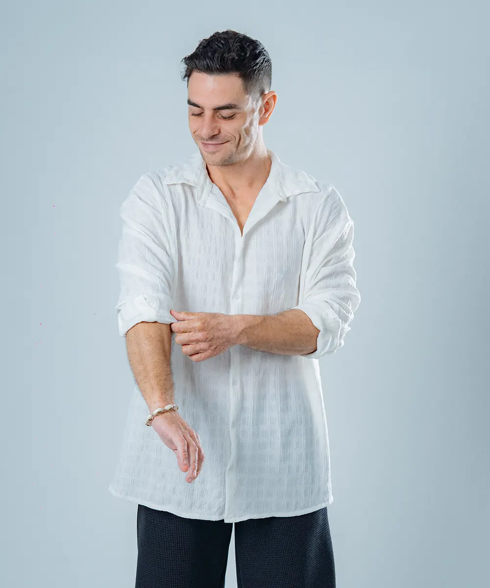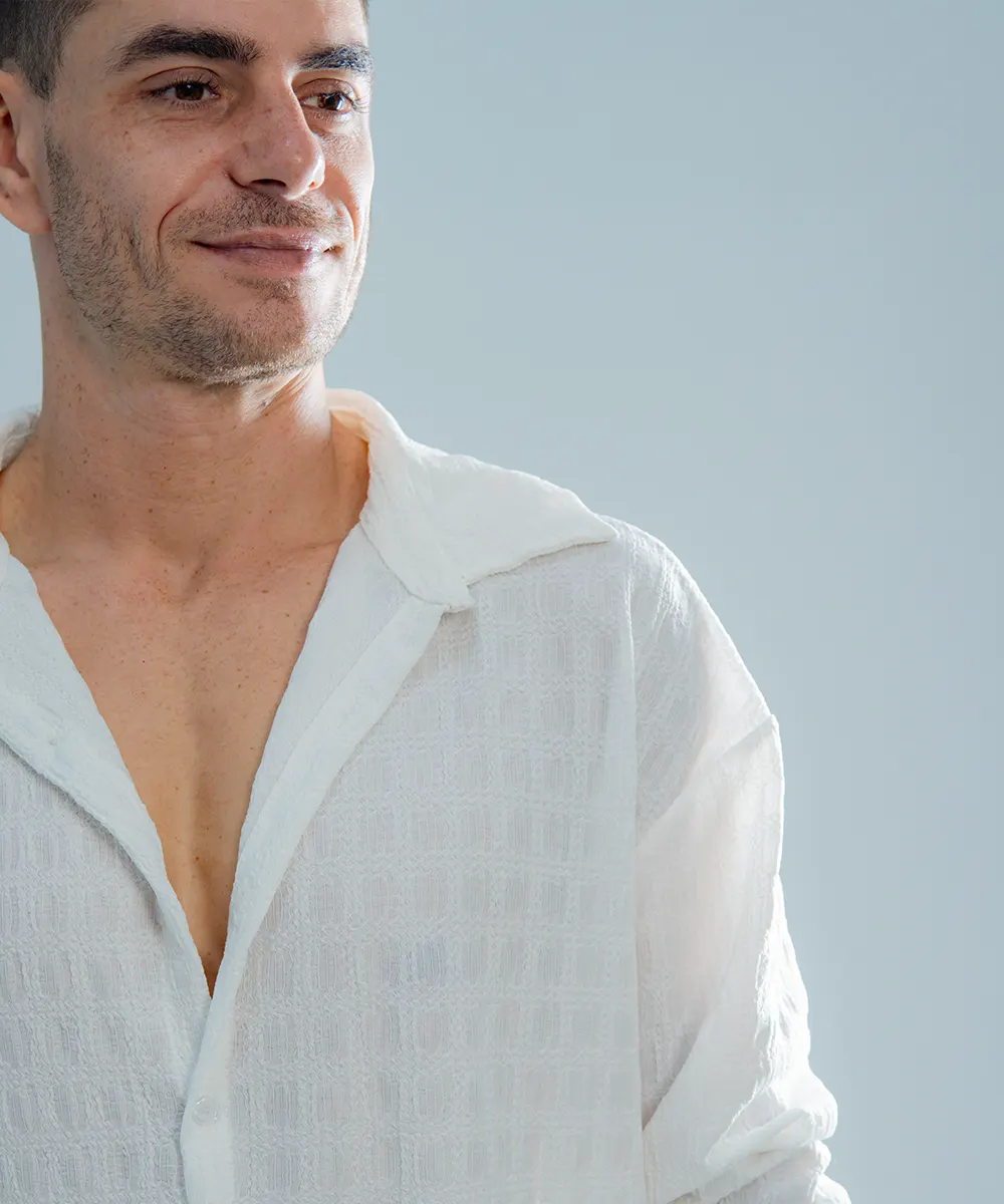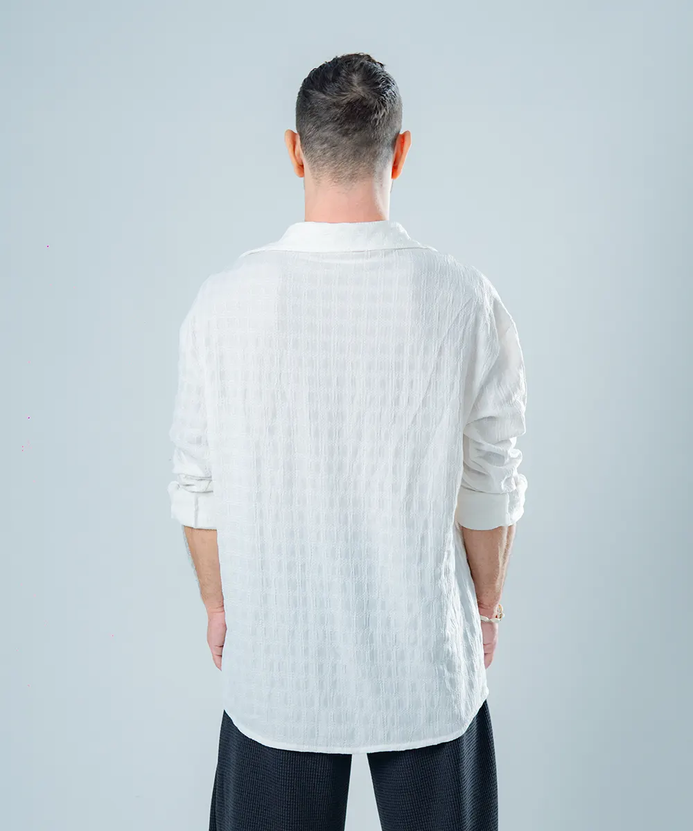 Crafted from a breathable, soft-touch fabric, the Phoenix White edition is designed to complement every skin tone and season. Its subtle texture and open collar design give it a modern edge while maintaining classic elegance, making it the ideal piece for layering or wearing solo.